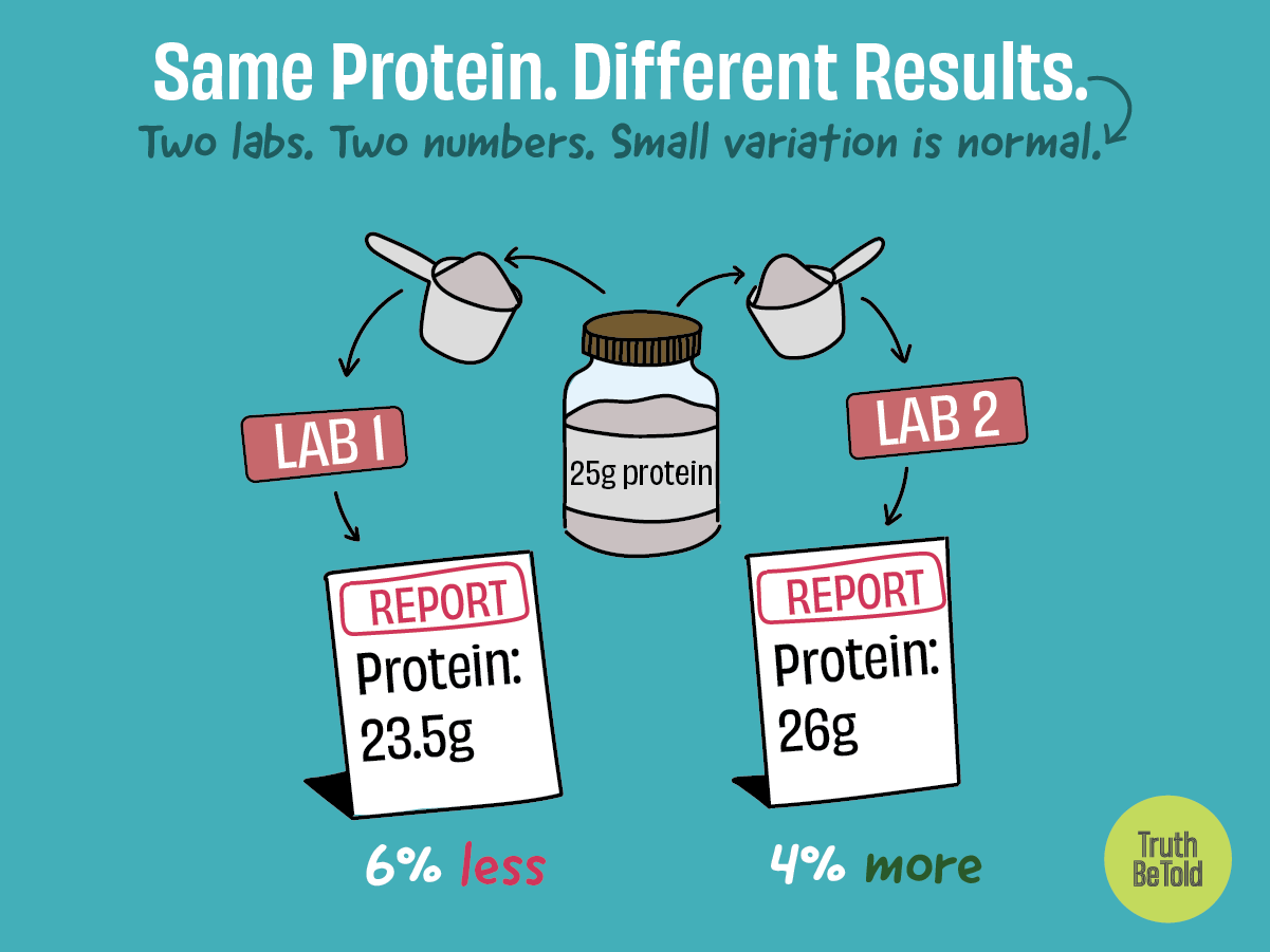 Let's make this concrete. If a protein powder claims 25g of protein per serving on its label, FSSAI allows it to contain anywhere from 22.5g to 27.5g and still be compliant. Why? Because natural variation is real. Test the same product on different days, with different moisture levels, using different samples from the same batch, and you'll get slightly different results.